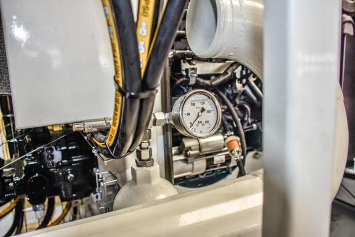 The engineers of Bofram created the complete mix and high-pressure unit. This unit is specifically designed for the HDD mud mixing truck of Mol Gestuurd Boren. This mud system is provided with two tanks, one for mixing and one for clean water. It also contains a hydraulic-driven hose reel with 40 meters of hose. Furthermore, a high mixing capacity, low fuel consumption, and wireless remote control are other important characteristics of our HDD equipment. The remote control has an engine start/stop, a digital pressure indicator, and a liters/minute indicator