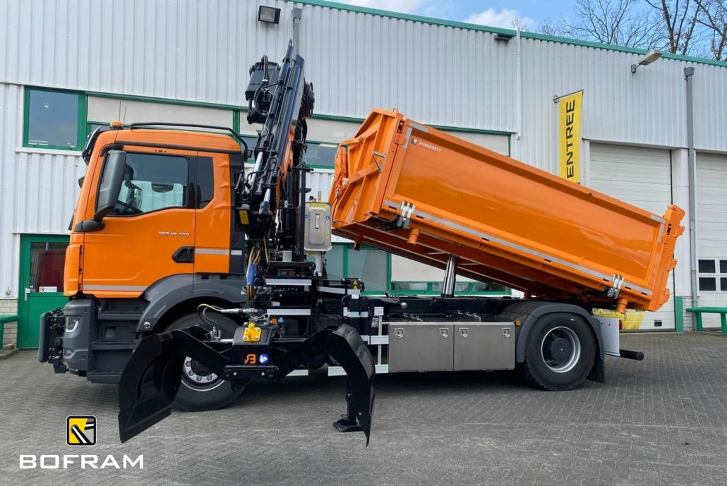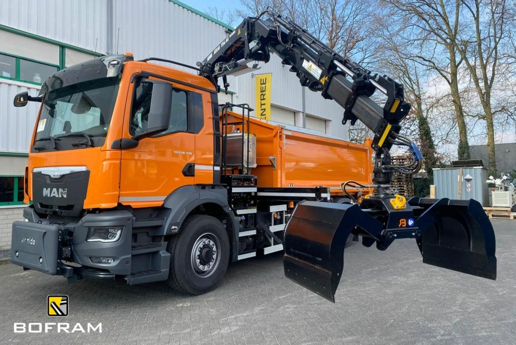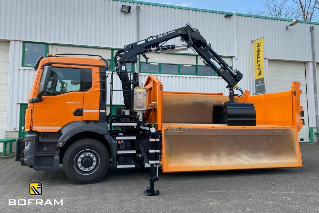 The brand new .4 series Atlas auto loader crane, type 126.4E A2, is designed according to the latest safety requirements. With advanced features and focus on efficiency and safety. This combined with the MAN Truck and double-sided tipper makes it a real all-rounder!