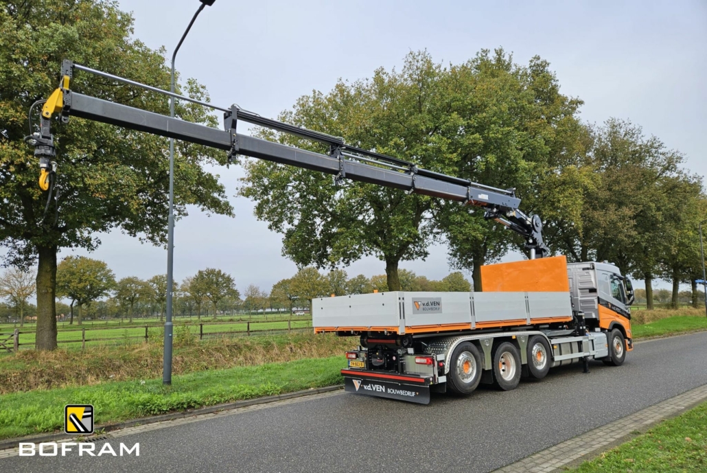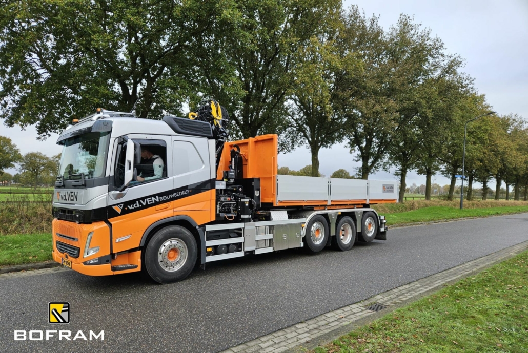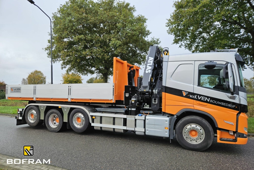 For Bouwbedrijf Van de Ven Veghel we were able to realize this beautiful truck body on a Volvo FMX 8×2*4. The truck is equipped with a 21T VDL hooklift system and a powerful 32T meter Atlas loader crane (type 332.4e A4) with a reach of 12.5 meters.