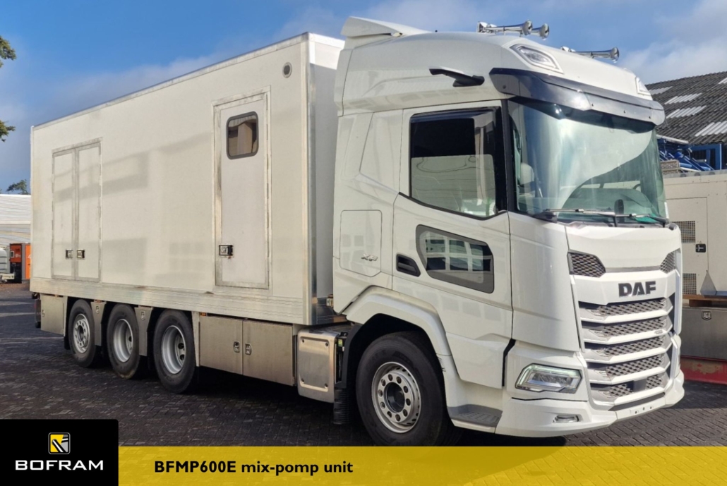We recently completed another great truck body: a BFMP600E mix pump unit, completely built in-house by Bofram Techniek! With a PTO/Generator-driven system and an impressive capacity of 600 liters per minute, this truck is ready for hard work.