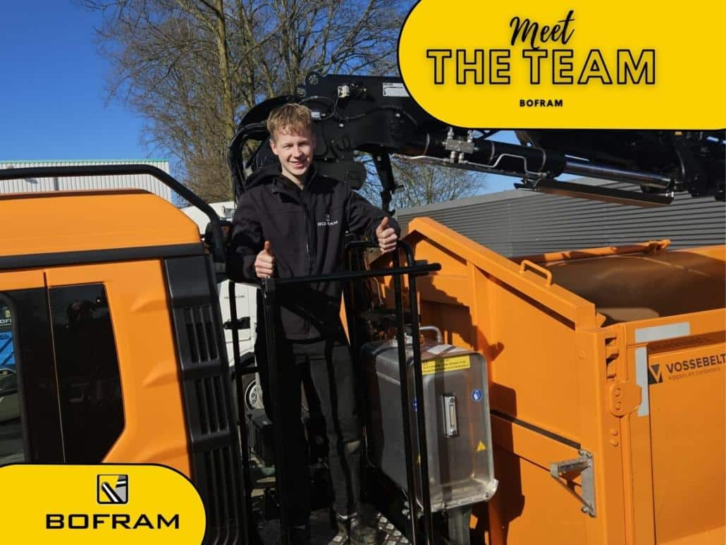 Mijn naam is Gian Emons en ik werk sinds dit jaar fulltime bij Bofram. Ik begon bij Bofram in 2022 met een bijbaantje. Met mijn werkzaamheden ben ik verantwoordelijk voor de onderhoud, reparaties en storingen aan onze kranen. Niets overtreft het gevoel wanneer ik een kraan weer goed aan de praat krijg na wat sleutelwerk. Wat ik het leukste vind aan mijn werkzaamheden is de mogelijkheid om met de service bus op pad te gaan naar klanten, om ze zo persoonlijk te kunnen helpen.