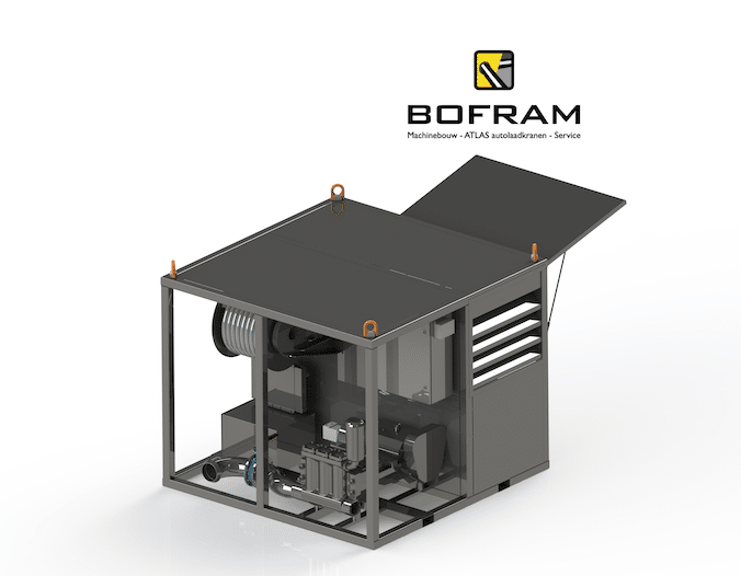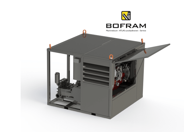 | Besturing | Besturingskast voorzien van display, noodstop en bedieningsknoppen. Knoppen hebben de volgende functies; o Noodstop, hoofdschakelaar, verlichting aan/uit o Dieselmotor aan/uit o Hoge drukpomp aan/uit o Hogedruk Liters+/- o Urenteller voor Dieselmotor en Hoge drukpomp Display voor het aflezen van actuele status, eventuele storingen, draai uren en onderhoudsintervallen. |