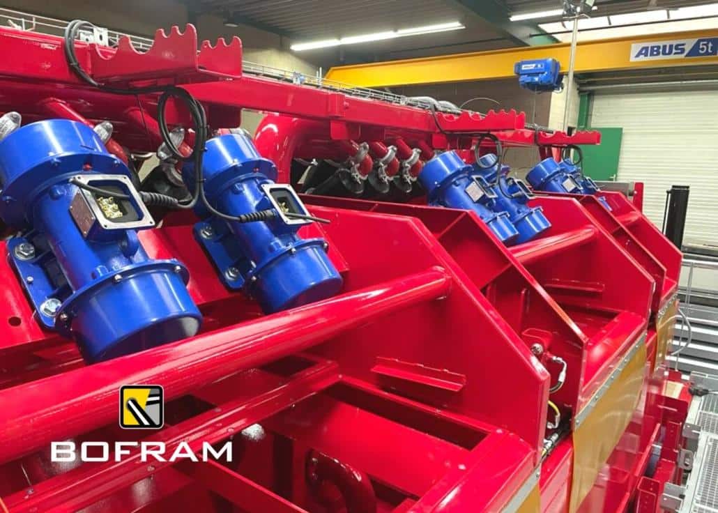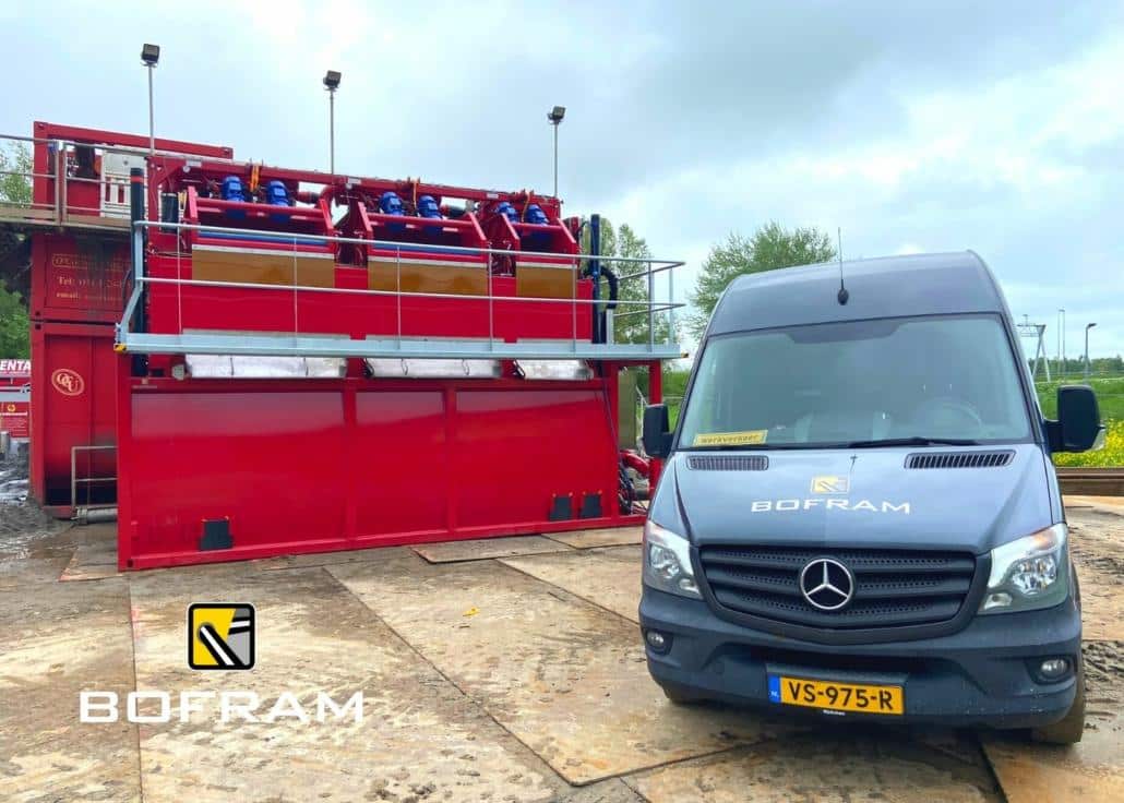 De recycling unit is uitgerust met drie Mission Short Frame pompen, die bekleed zijn met een geharde Nedox coating. Dit betekent dat de pompen tot wel 3x langer meegaan en dat de pomp en motor op een kortere afstand van elkaar zijn gemonteerd in vergelijking met traditionele pompen. Bovendien, is de unit uitgerust met PE100 leidingen die beter bestand zijn tegen zand dan stalen leidingen. De recycling unit is ook uitgerust met een shale shaker en twee mud cleaners met high flow hydrocyclonen. De vervuilde mud/bentoniet wordt in drie stappen schoongemaakt, waarbij de vervuilde mud binnenkomt via de shale shaker, vervolgens wordt deze over de eerste mud cleaner gepompt en ten slotte herhaalt deze stap op de tweede mud cleaner. De schone vloeistof komt vervolgens terecht in de storage unit.