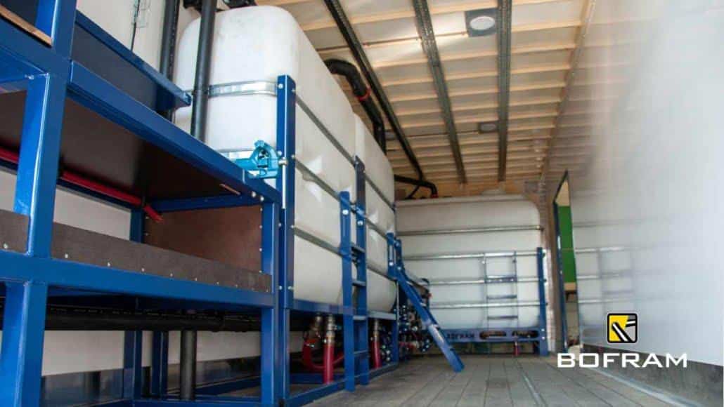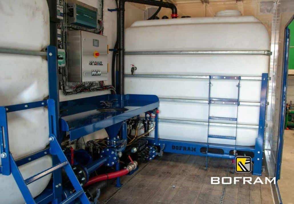 3D-Drilling had een vrachtwagen gekocht die werd gebruikt om bier mee te vervoeren. Deze vrachtwagen was voorzien van rolzeilen en Bofram heeft hem omgebouwd van bierwagen tot boorwagen. Eerst hebben we de rolzeilen verwijderd en zijwanden van plywood gemonteerd. Daarnaast is er ook een deur met trapje geplaatst aan de rechterkant van de vrachtwagen zodat de bediener van de mix pomp set makkelijk in en uit de vrachtwagen kan. Achterin in de truck zijn nog extra rijplaten gemonteerd zodat de boormachine makkelijk in de boorwagen gereden kan worden. Doordat de mix pomp set van Bofram zo compact is, is hier genoeg ruimte voor.