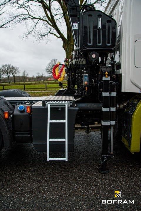 Met beide vrachtwagens bij ons in de loods konden we goed kijken of de aansluitingen hetzelfde waren voor de Autolaadkraan zodat hij perfect overgeplaatst kon worden. Na deze controle werd de huidige opbouw zorgvuldig gedemonteerd en de nieuwe vrachtwagen voorbereid voor de opbouw. Bofram heeft hiervoor een identieke kraanvoet gemaakt zodat de Atlas autolaadkraan op de nieuwe vrachtwagen geplaatst kon worden. Zo heeft Bofram weer een mooie vrachtwagenopbouw met hergebruik van een Atlas autolaadkraan mogen realiseren.