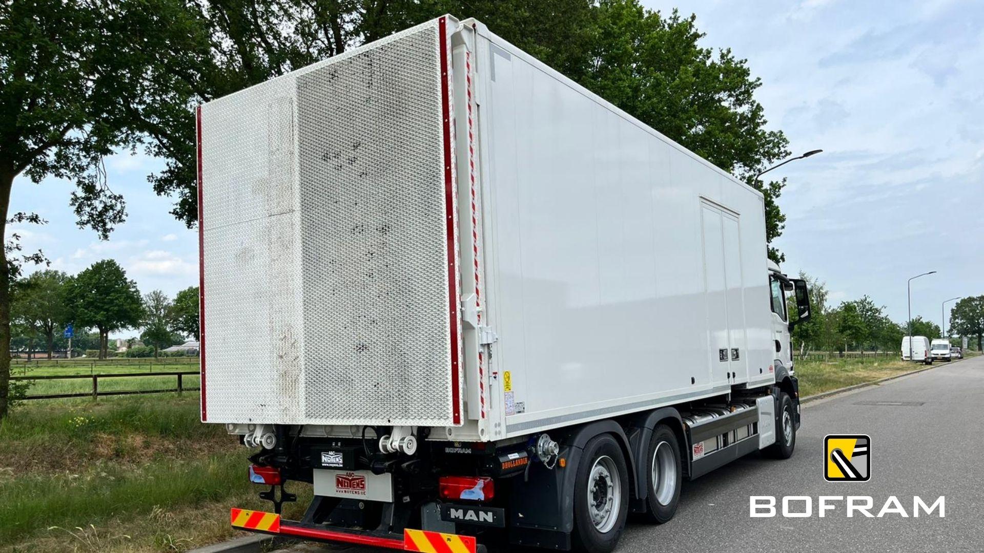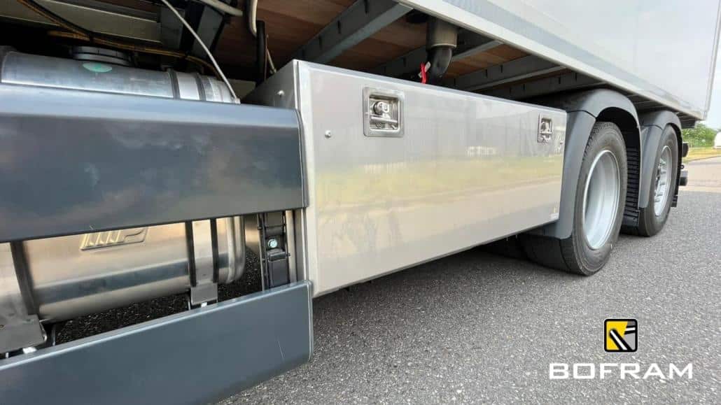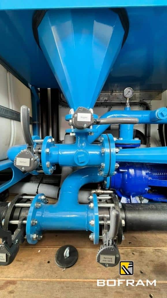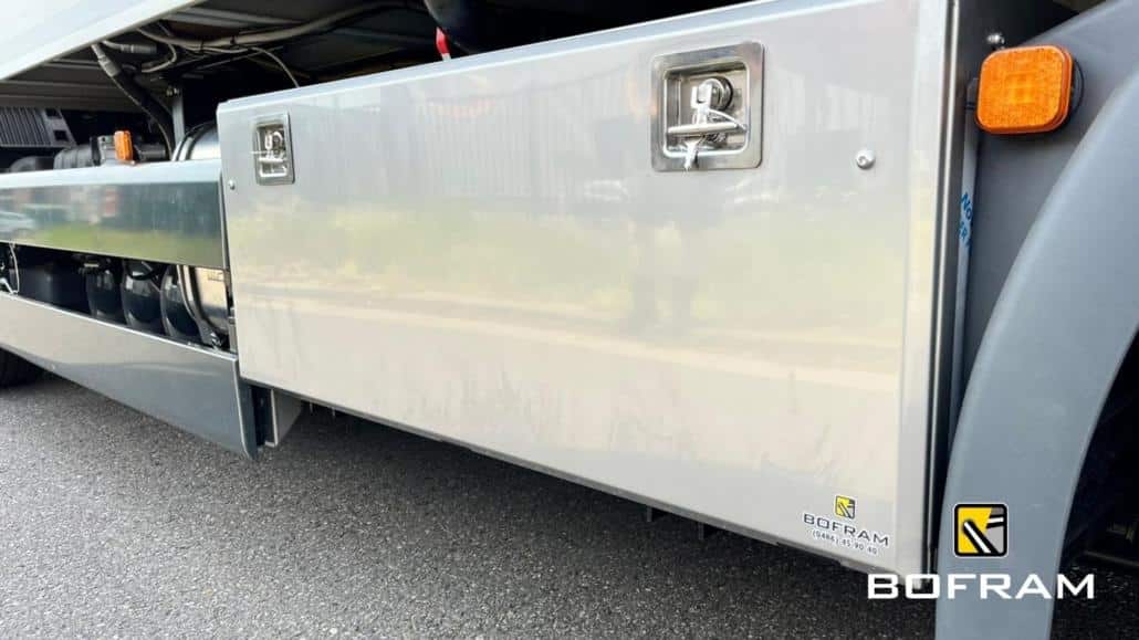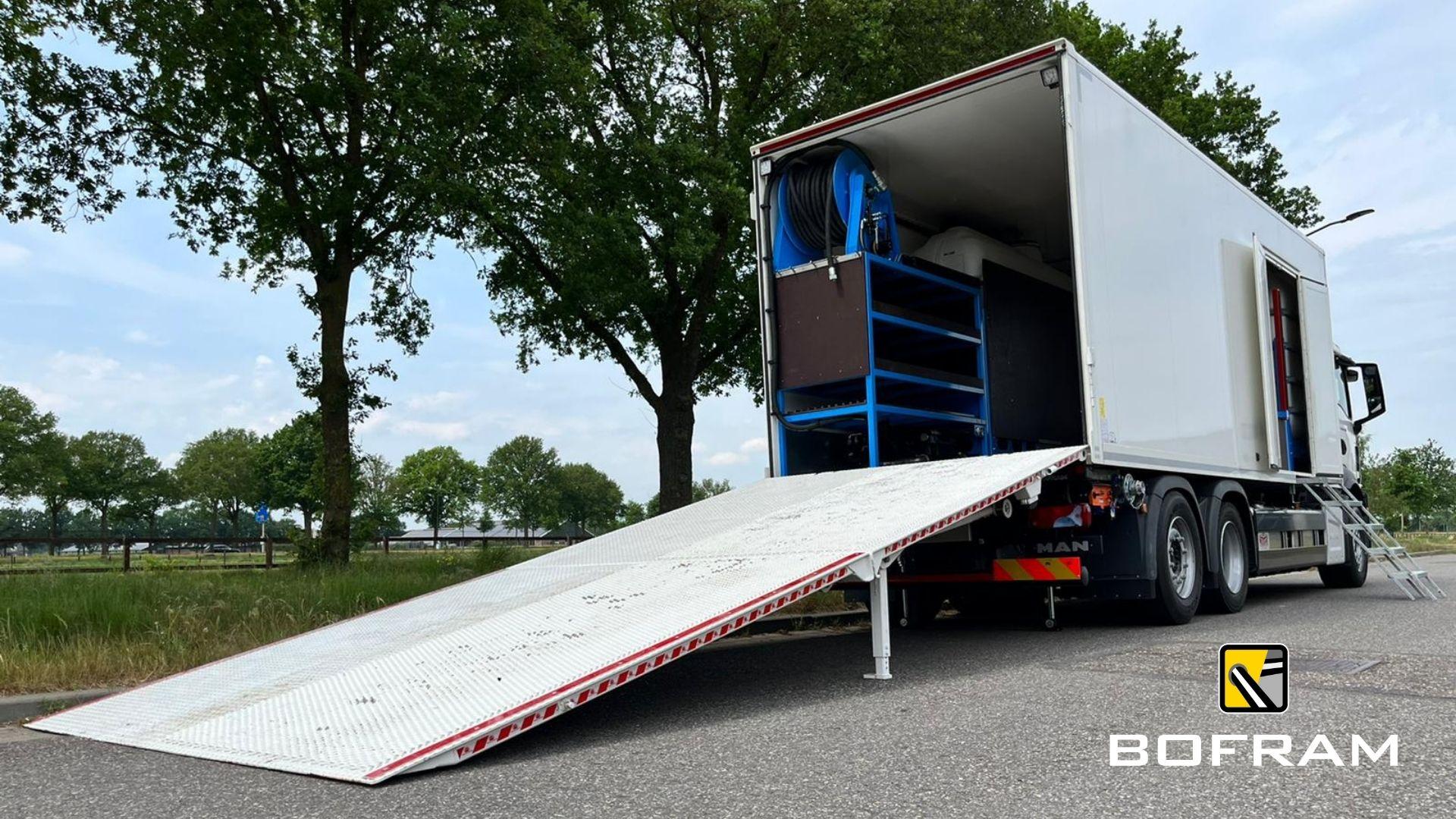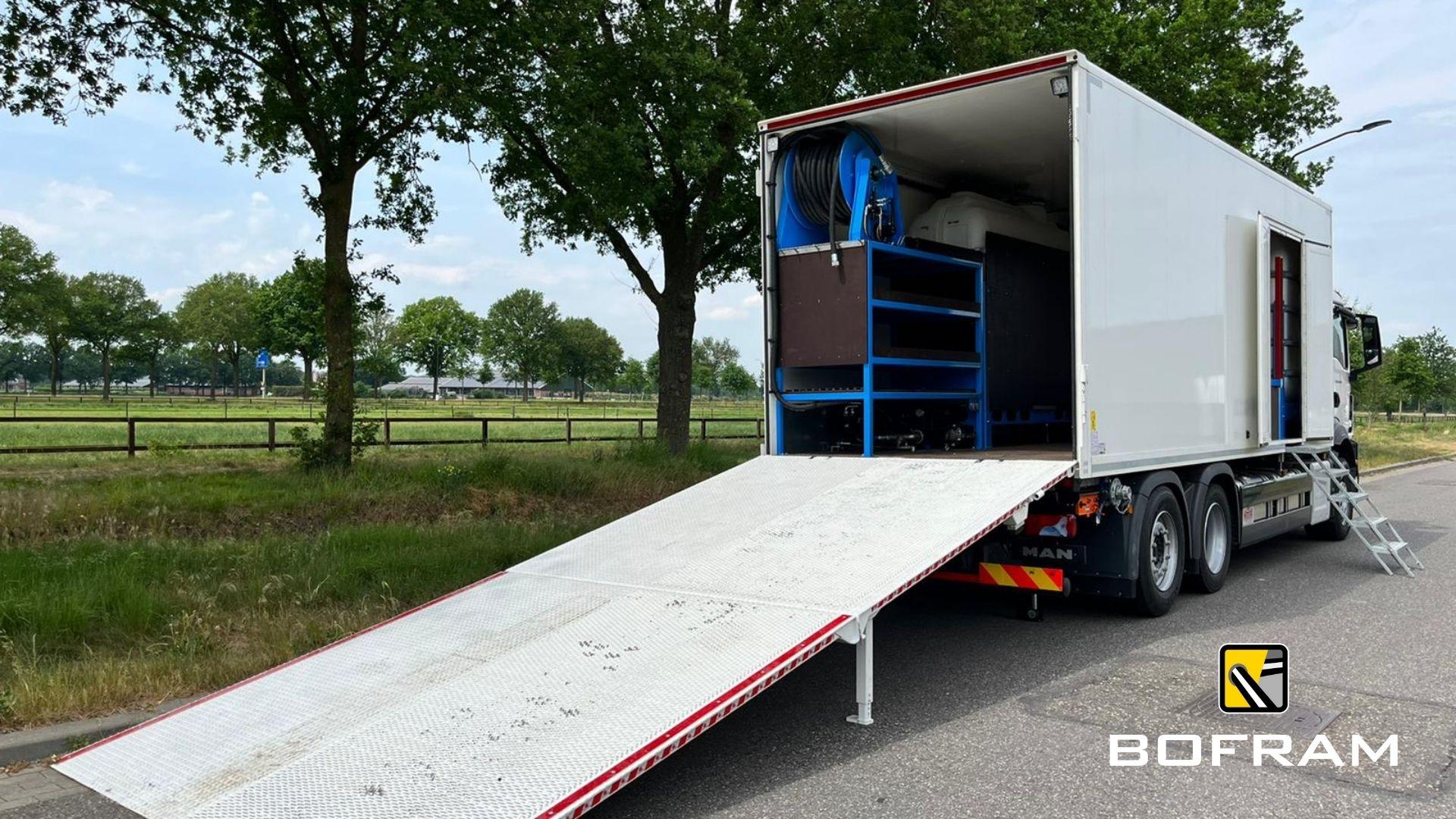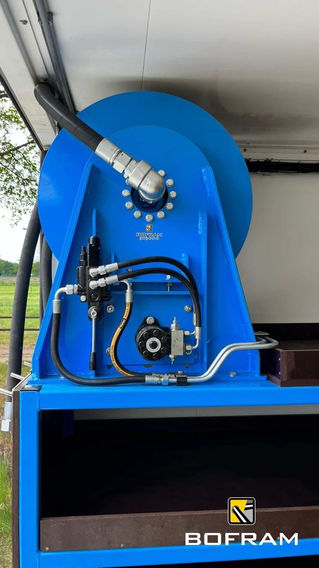 De vorige opbouw boorwagen met HDD mixunit voor Dekabo had ongeveer dezelfde indeling als deze. De boorwagen heeft aan de zijkant zijn mixtank, de hoppertafel, de besturingskast en een opbergkast met haspel. De haspel met bentoniet slang kan gebruikt worden om de boormachine te voorzien van bentoniet. Wat vrijwel meteen opvalt is de plaat die tegen de mixtank is gemonteerd. Hier zal specifiek gereedschap aan opgehangen worden. Zo neemt het weinig ruimte in en is het altijd binnen handbereik. Achterin de boorwagen is de voorraadtank met water te vinden. In de overige ruimte hebben wij een los frame gemaakt met lades. Op het frame kan een pallet met bentoniet geplaatst worden en in de lades nog overig gereedschap. Zelf dan is er nog steeds plek voor de boormachine zelf. Op deze manier is alle ruimte in de boorwagen optimaal gebruikt.