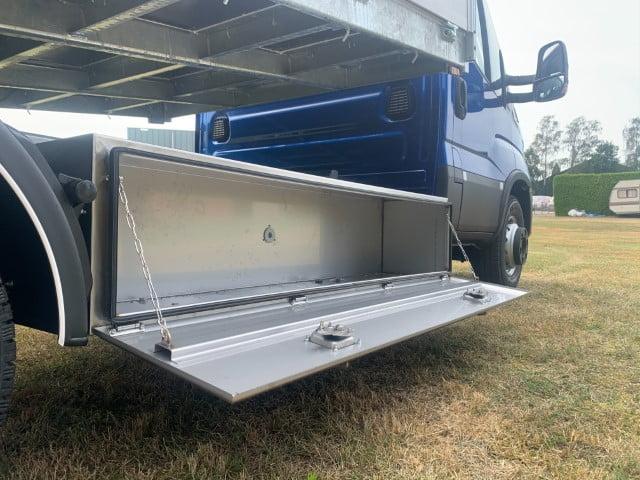 Bofram is onder andere specialist in vrachtwagen en truck opbouw. CFG bedrijfswagens kwam bij ons met de specifieke wens om een minitruck te bouwen met de kenmerken van een een 7 tons voertuig maar de uitstraling van een 3.5 tons voertuig. De uiteindelijke gebruiker, meneer Josten, wilde namelijk graag de mogelijkheid hebben om een minigraver te vervoeren met zijn achterwaartse kipper. Daarom heeft Bofram een extra zware kipper gebouwd op een IVECO. Dit houdt in dat dit voertuig een extra zwaar onderstel heeft gekregen en een laadbak met een laadvermogen van 4 ton. Op deze manier kan een minigraver veilig vervoerd worden.