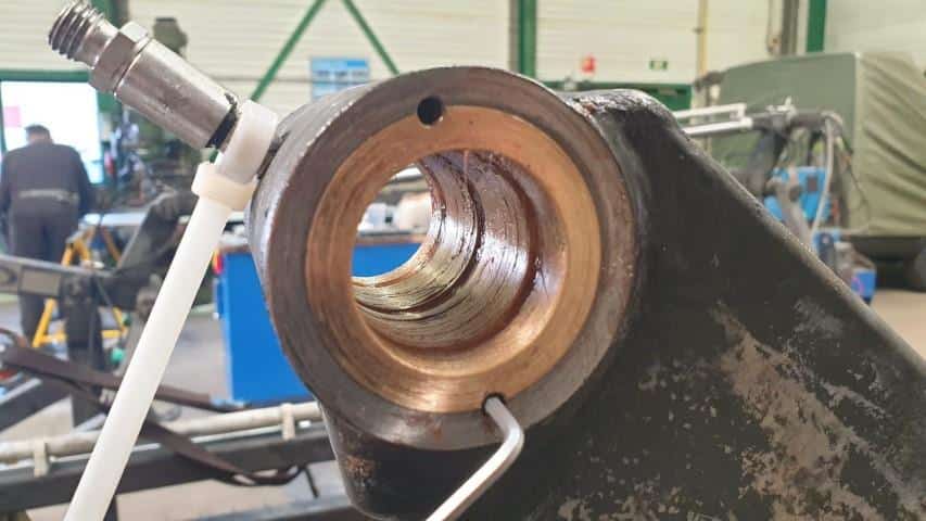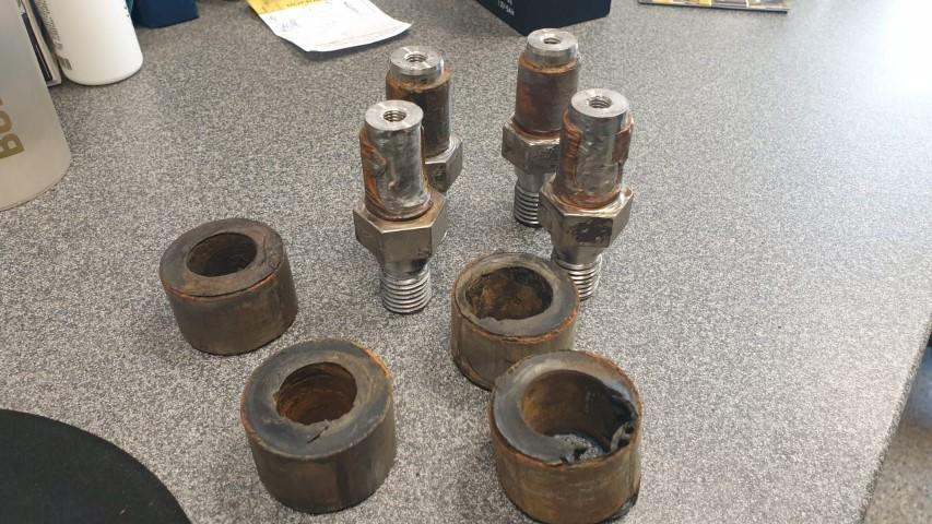 Bij de zandwasser waren de lagers en pennen versleten en hebben we deze speciaal op maat gemaakt omdat deze ook niet meer op de markt zijn aan te komen. Tijdens het demonteren van de pennen en bussen in onze werkplaats kwamen we nog meer versleten onderdelen tegen. Op het moment dat je materieel gaat demonteren is er de kans dat je nog gebreken kan tegenkomen die in eerste instantie niet zichtbaar zijn. Zo waren er pennen die de twee aan elkaar verbinden ingesleten. Deze hebben we laten draaien samen met de Silent Blocks ,die tevens ook versleten waren.