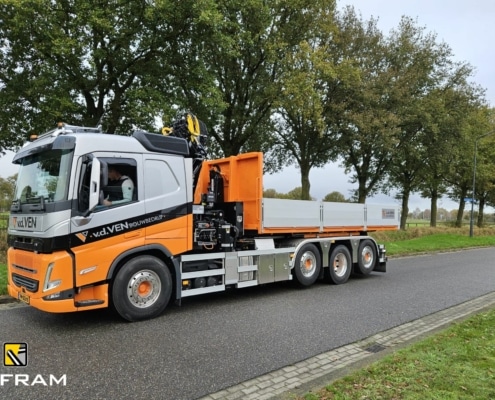 Voor Bouwbedrijf Van de Ven Veghel hebben we deze prachtige truckopbouw mogen realiseren op een Volvo FMX 8×2*4. De truck is uitgerust met een 21T VDL haakarmsysteem en een krachtige 32T meter Atlas autolaadkraan (type 332.4e A4) met een bereik van 12,5 meter.